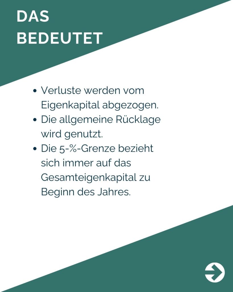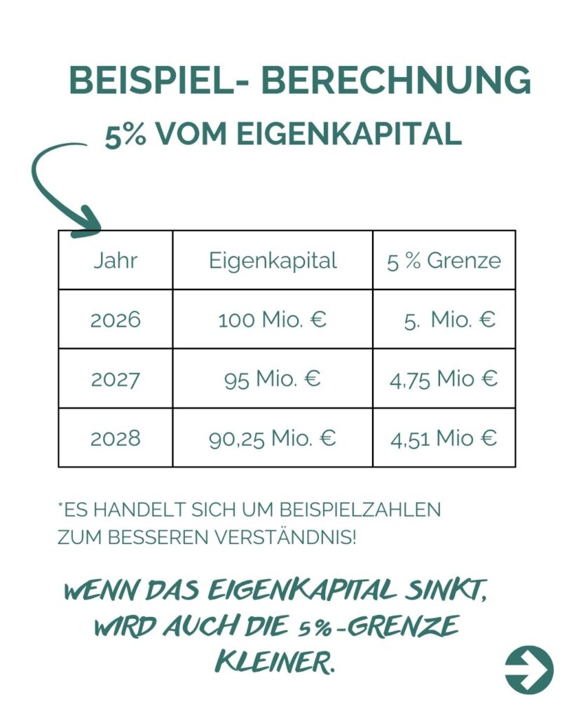 - Wenn das Eigenkapital sinkt, wird auch die 5-%-Grenze kleiner.