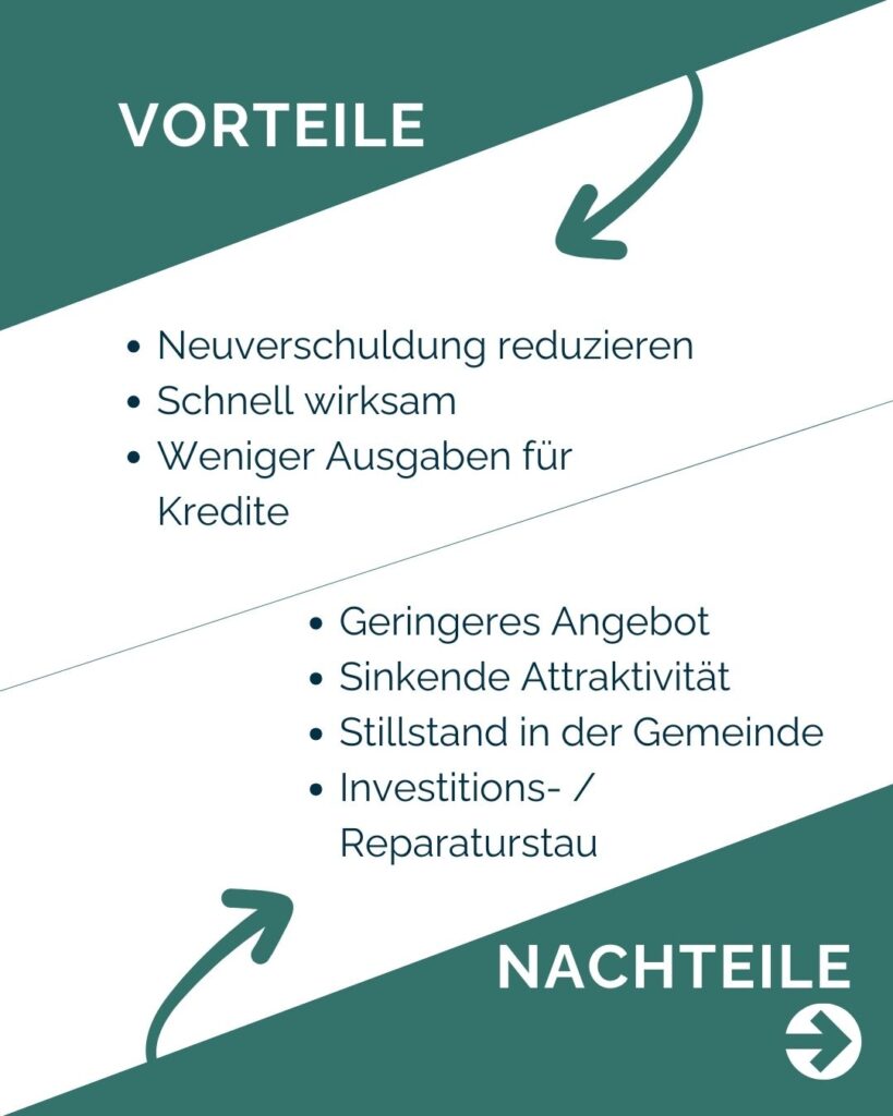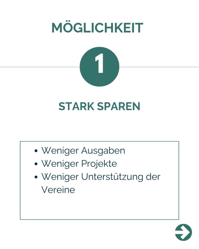 • Weniger Geld für freiwillige Angebote (z. B. Kultur, Sport, Feste, Vereine, Ehrenamt)