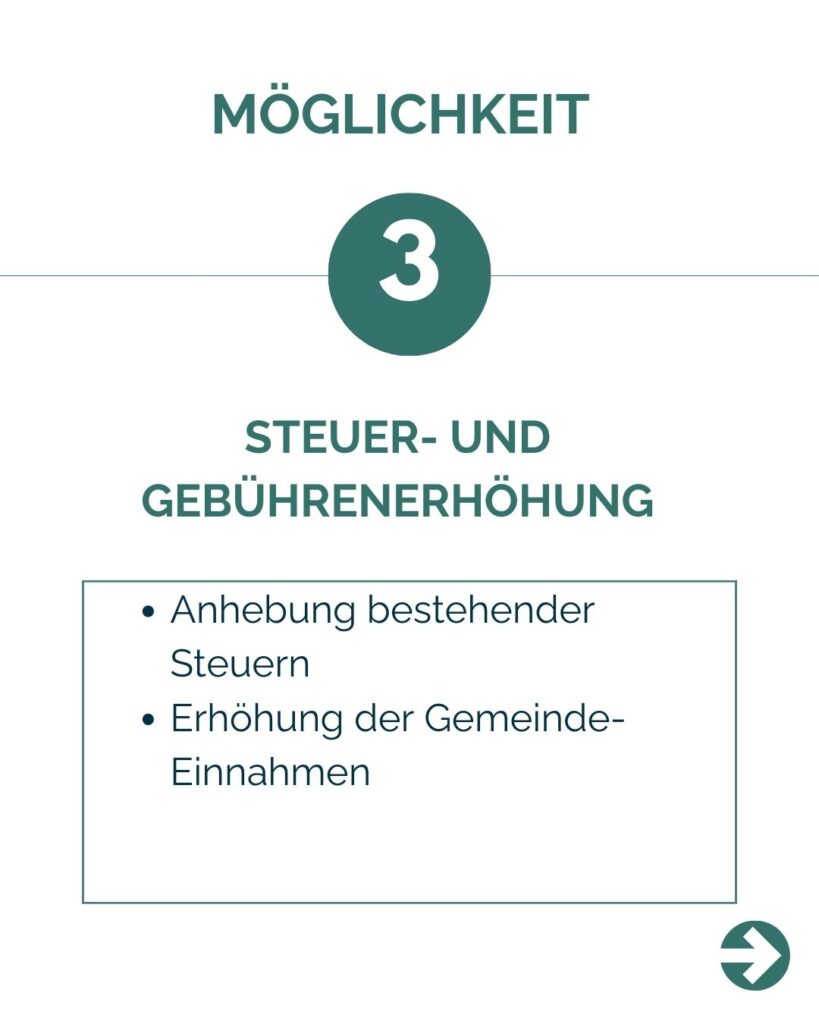Die Gemeinde wird verpflichtet, einen Finanz- und Sparplan zu erstellen. Dieser Plan zeigt:
