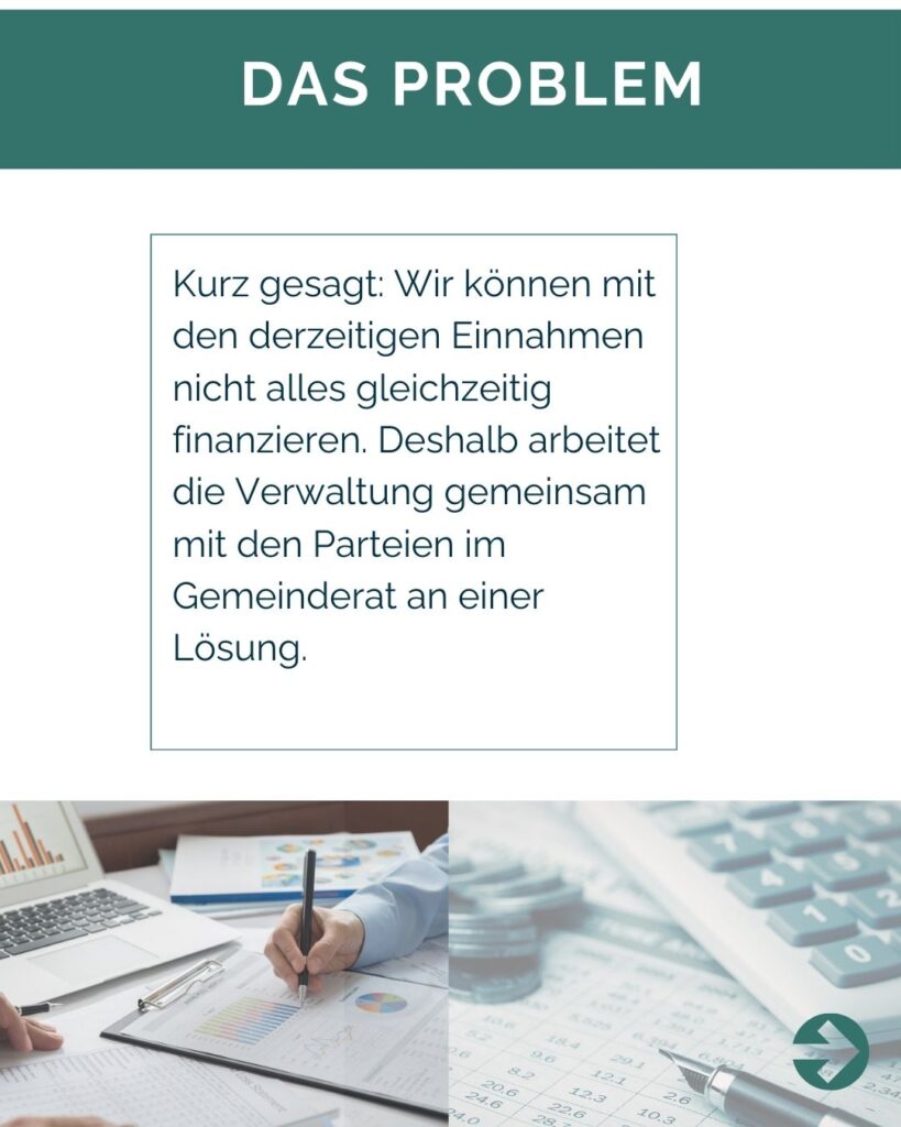 Aktuell reicht das nicht für alles. Deshalb arbeiten Verwaltung und Gemeinderat an nachhaltigen Lösungen für heute und für kommende Generationen.